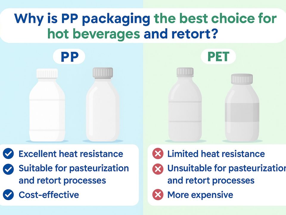 หากคุณกำลังมองหาบรรจุภัณฑ์สำหรับเครื่องดื่มบรรจุร้อน เช่นนมถั่วเหลือง นมพาสเจอร์ไรซ์ หรือชาสมุนไพร ขวด PP คือทางเลือกที่ปลอดภัยและเหมาะสมกว่า PET อย่างเห็นได้ชัด บทความนี้จะพาคุณเข้าใจข้อแตกต่างหลัก พร้อมแนะนำว่าทำไมผู้ผลิต OEM จำนวนมากจึงเลือกใช้ PP